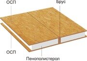 SIP панель состоит из двух слоев ориентированной стружечной плиты (ОСП), между которыми вклеивается твердая пенополистирольная плита ПСБ-С-35: